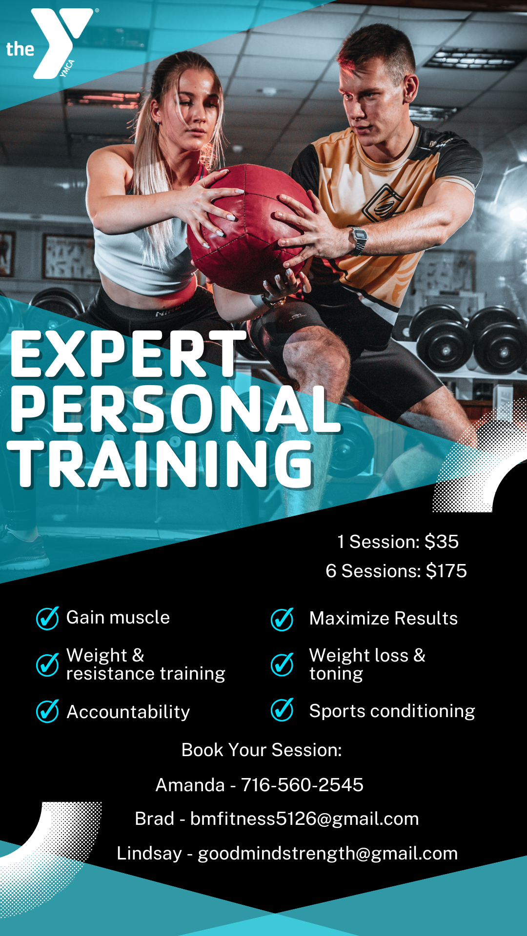 Want some ongoing personal attention? Get a little extra help from a certified Y fitness trainer who will develop, monitor and modify your exercise program to meet your individual needs. Personal Training is perfect for: